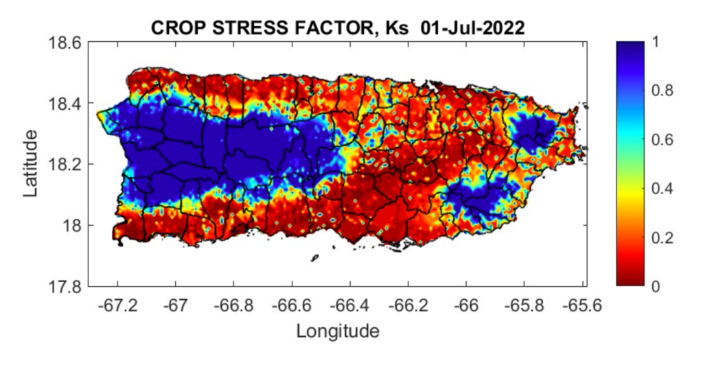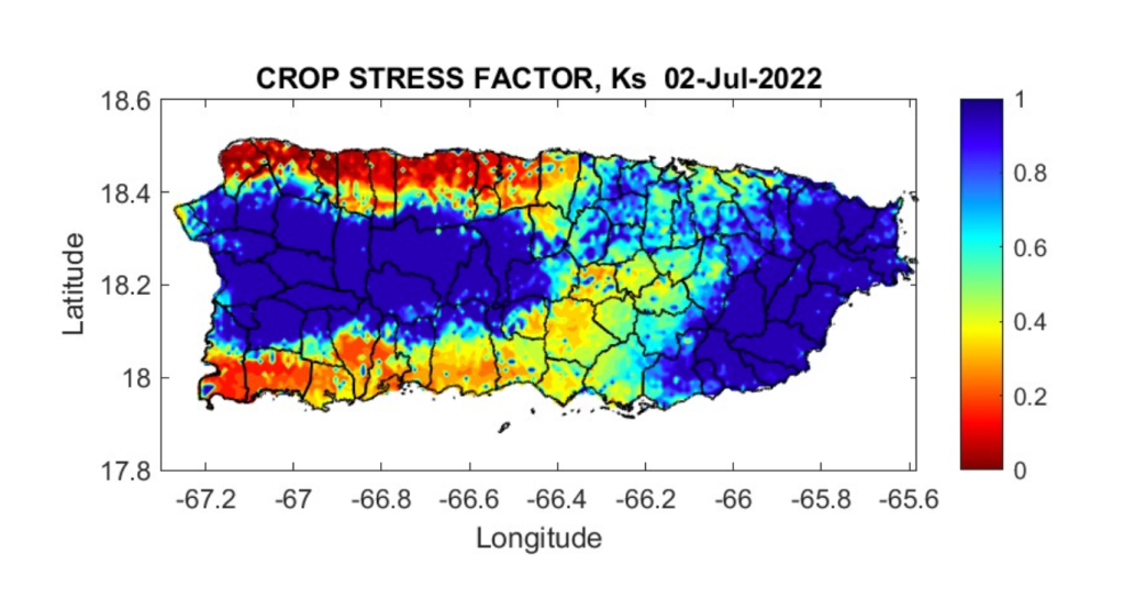 Figure 7. Crop Stress factor throughout PR on July 2, 2022.