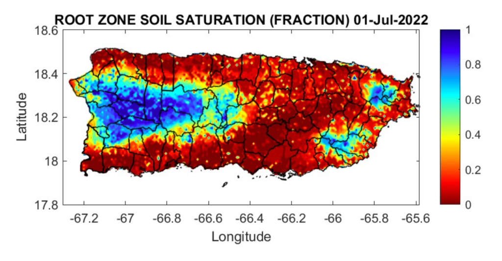 Figure 4. Root zone soil saturation in Puerto Rico on Friday, July 1, 2022.