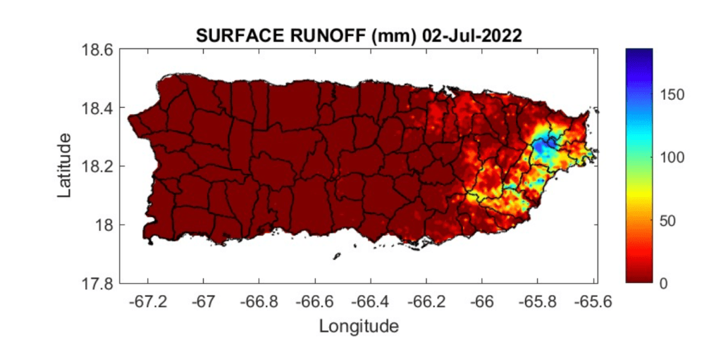 Figure 8. Estimated surface runoff throughout Puerto Rico on July 2, 2022.