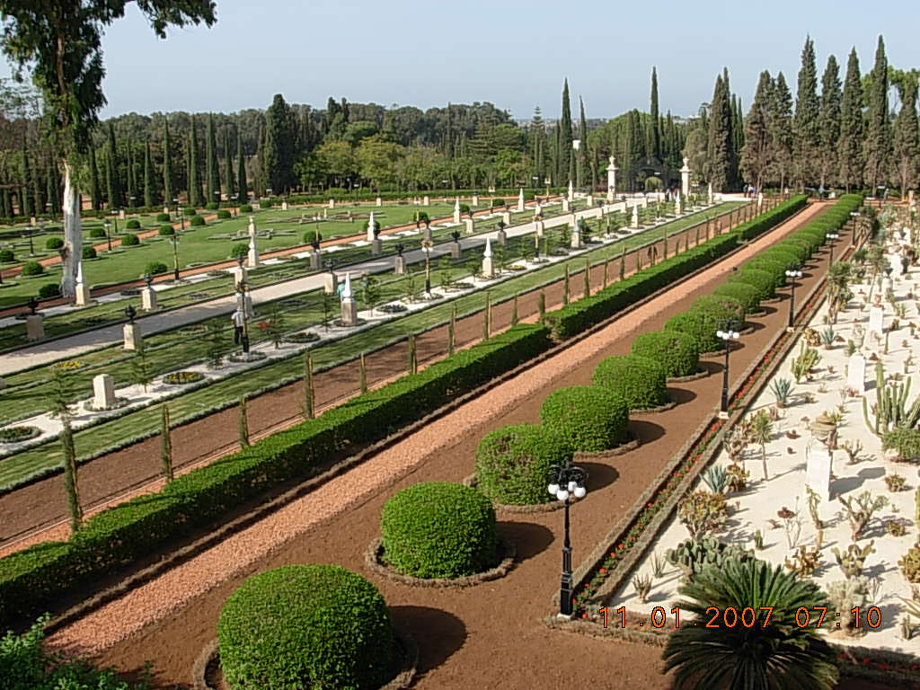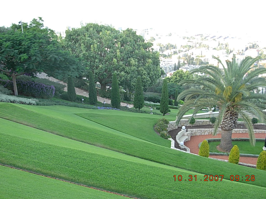 El propósito de esta publicación es compartir algunas fotos que tomé en mi peregrinaje al Centro Mundial Bahá’í en Haifa y Akka, Israel, en octubre de 2007. Los Jardines Bahá’ís son mundialmente famosos por su belleza que atrae a cientos de miles de turistas cada año. De especial interés para mí son las fotos relacionadas con los sistemas de riego y drenaje, ya que doy un curso sobre este tema en la Universidad de Puerto Rico, Recinto de Mayagüez. Los Jardines Bahá’ís representan un ejemplo de la aplicación de tecnologías de vanguardia en sistemas de riego, drenaje y conservación.