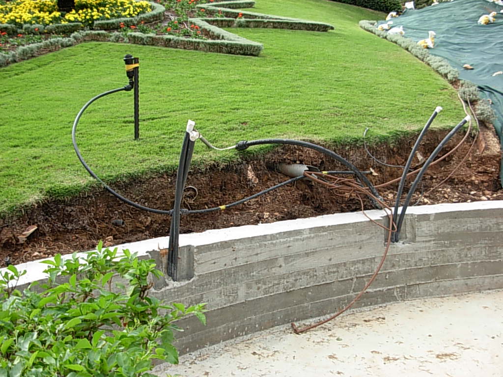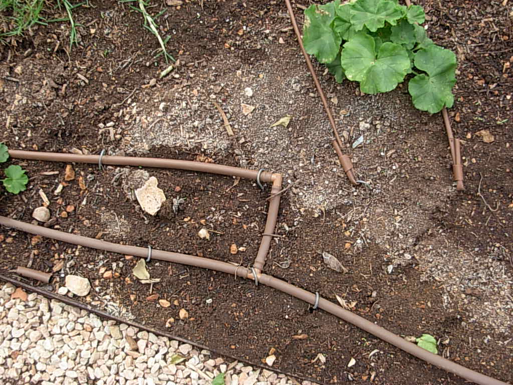 Octubre y noviembre es el período en el que el personal del jardín replanta muchas de las parcelas del jardín, por lo tanto, varias parcelas se encontraban vacías, lo que expone las líneas marrones de riego por goteo Netafim.