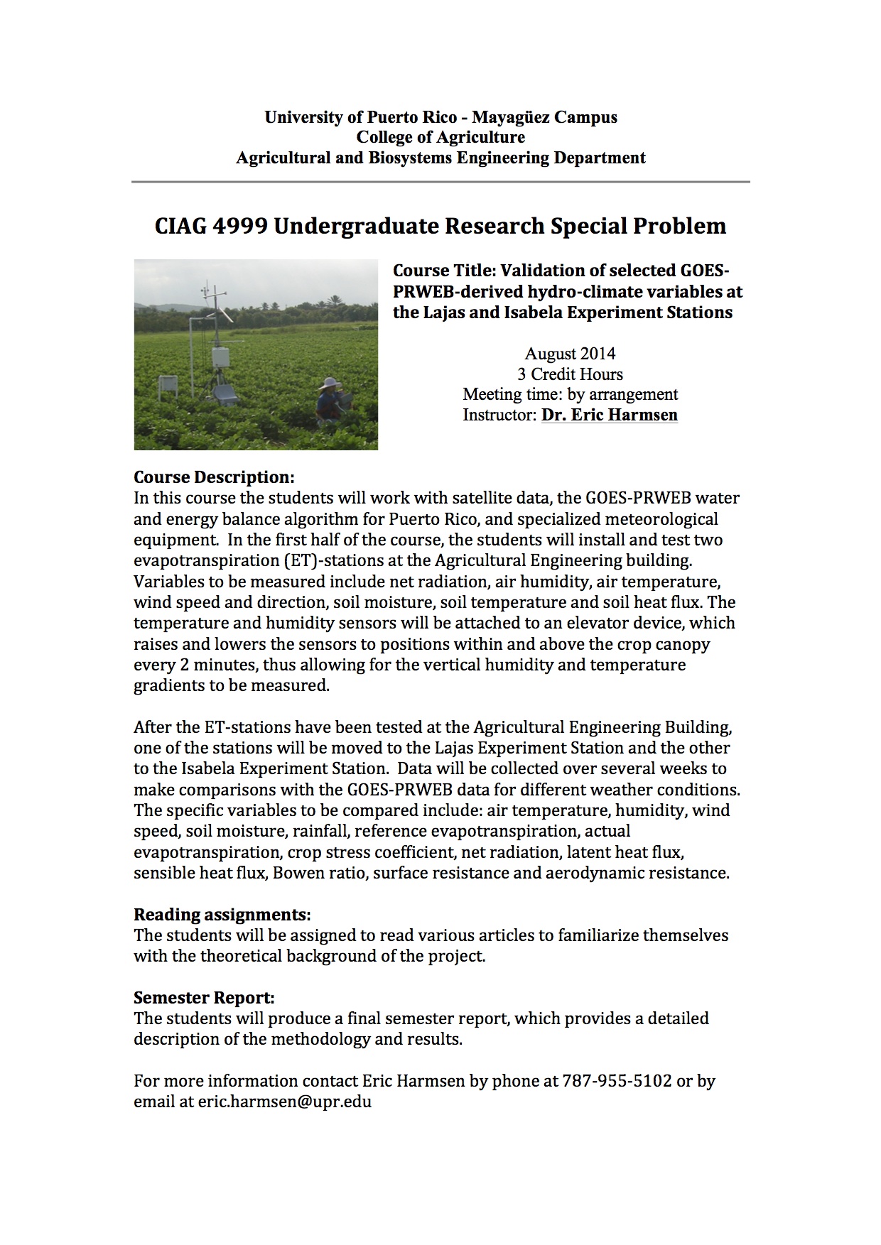 Course offerings this semester at UPRM: Farm Irrigation and Agroclimatology (TMAG)